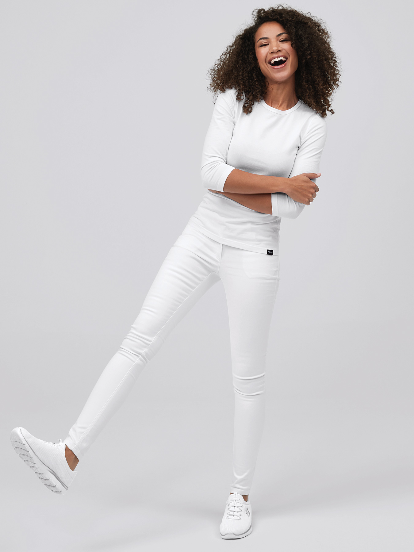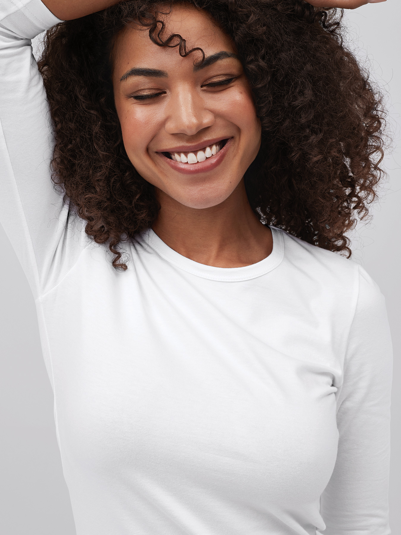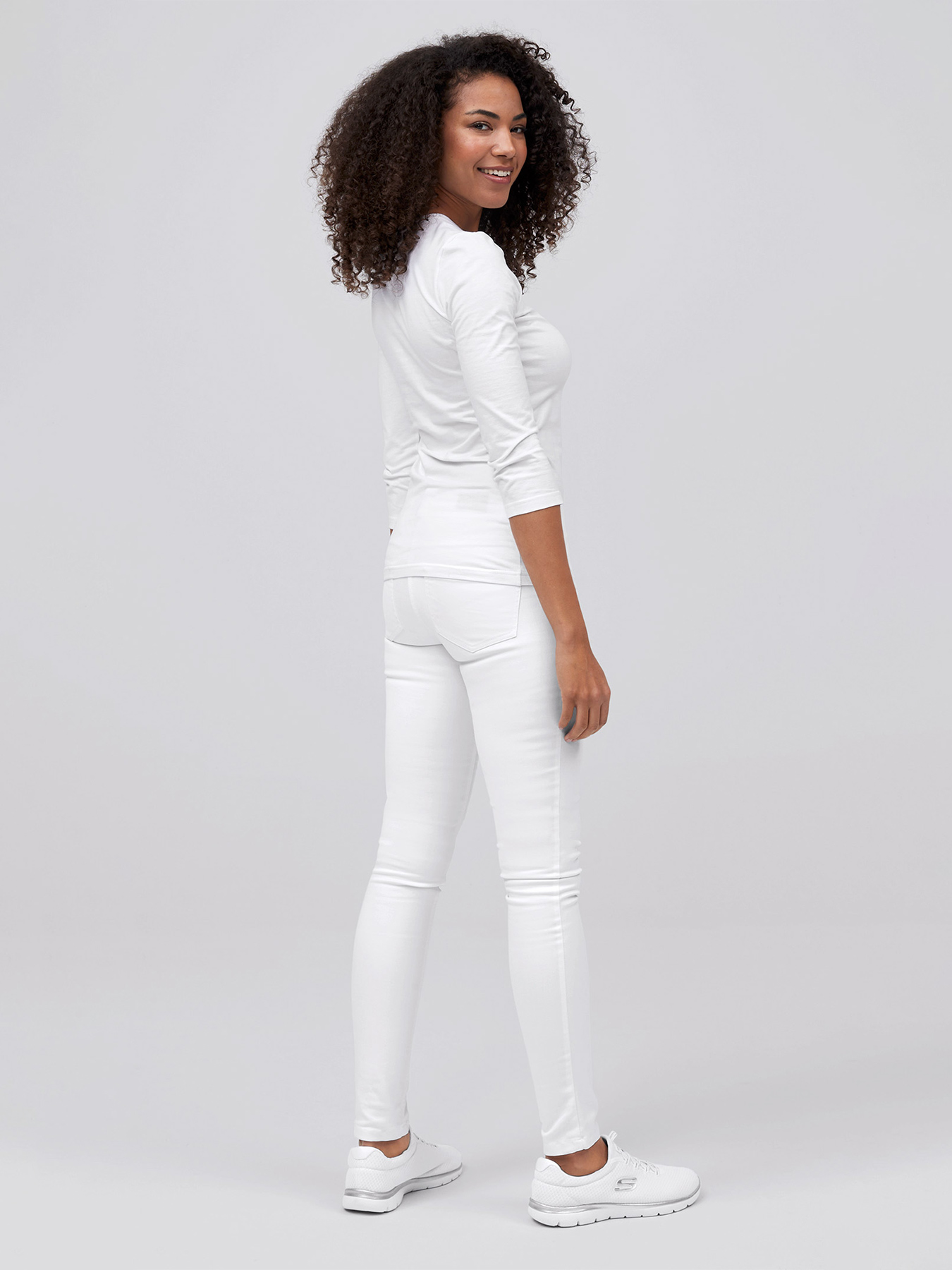 2er-Pack: Rundhalsausschnitt , ¾-Arm, körpernah geschnitten, Rückenlänge bei Gr. S ca. 64 cm. Formstabil und elastisch, 94% Baumwolle/6% Elasthan, 200 g/m², Single Jersey, 60°-Wäsche.