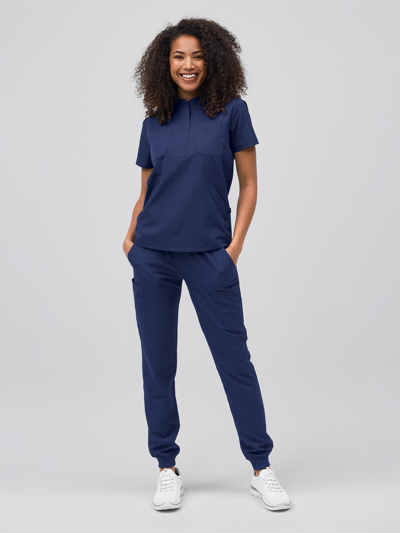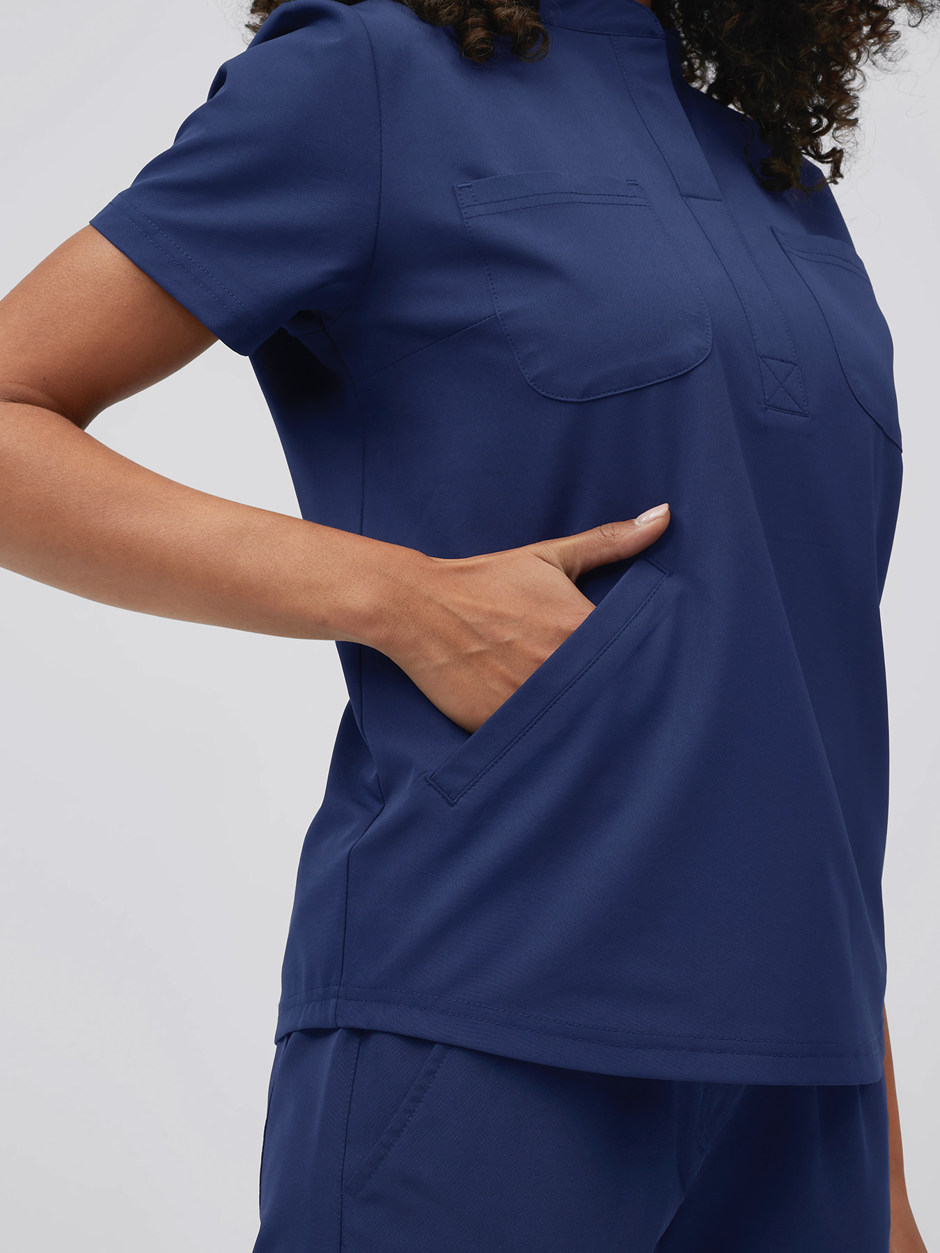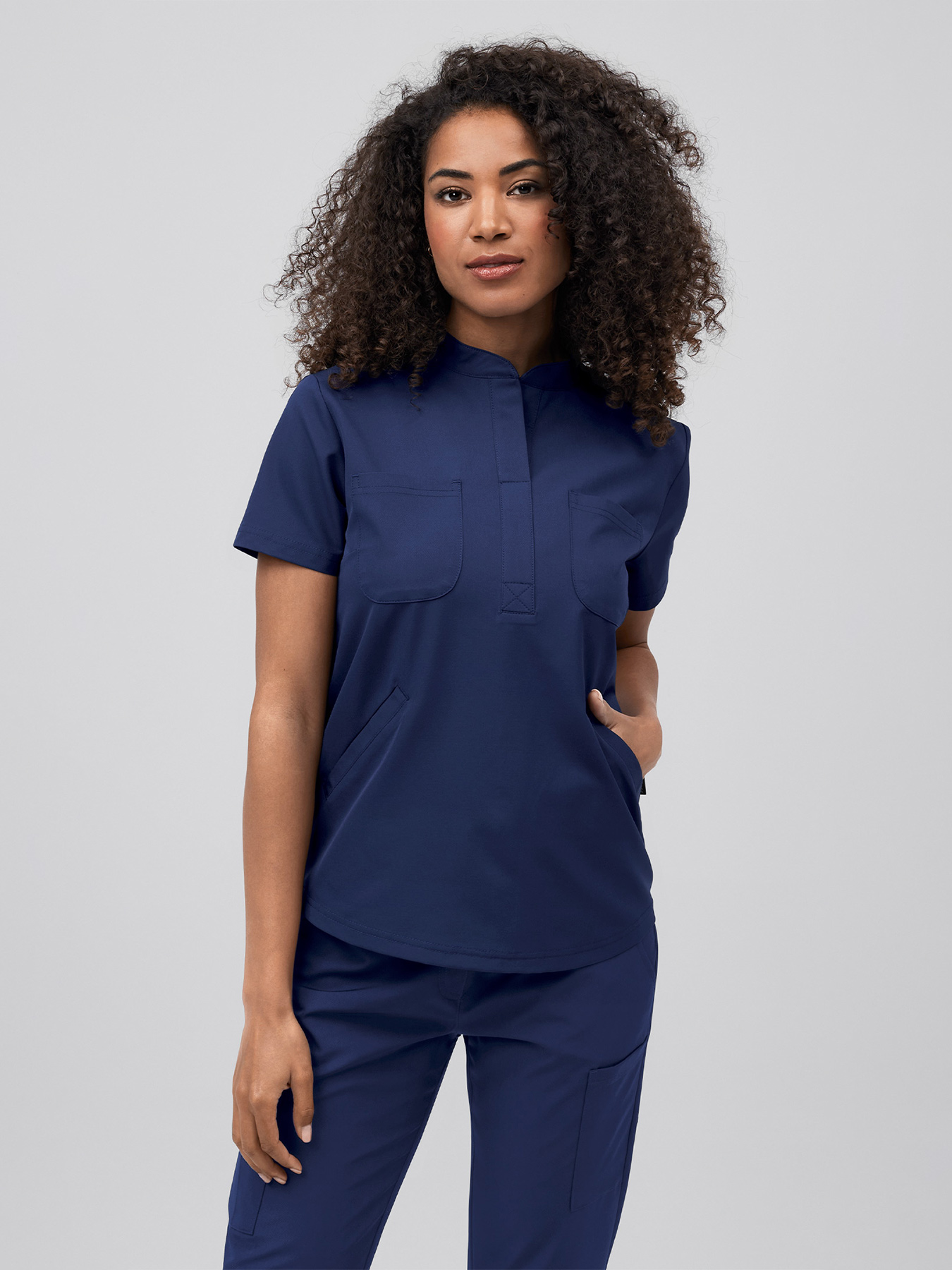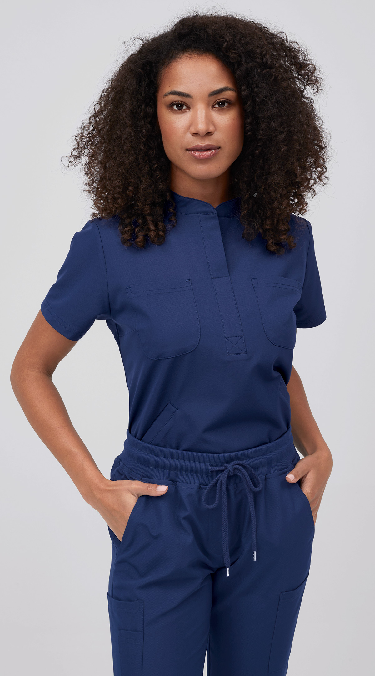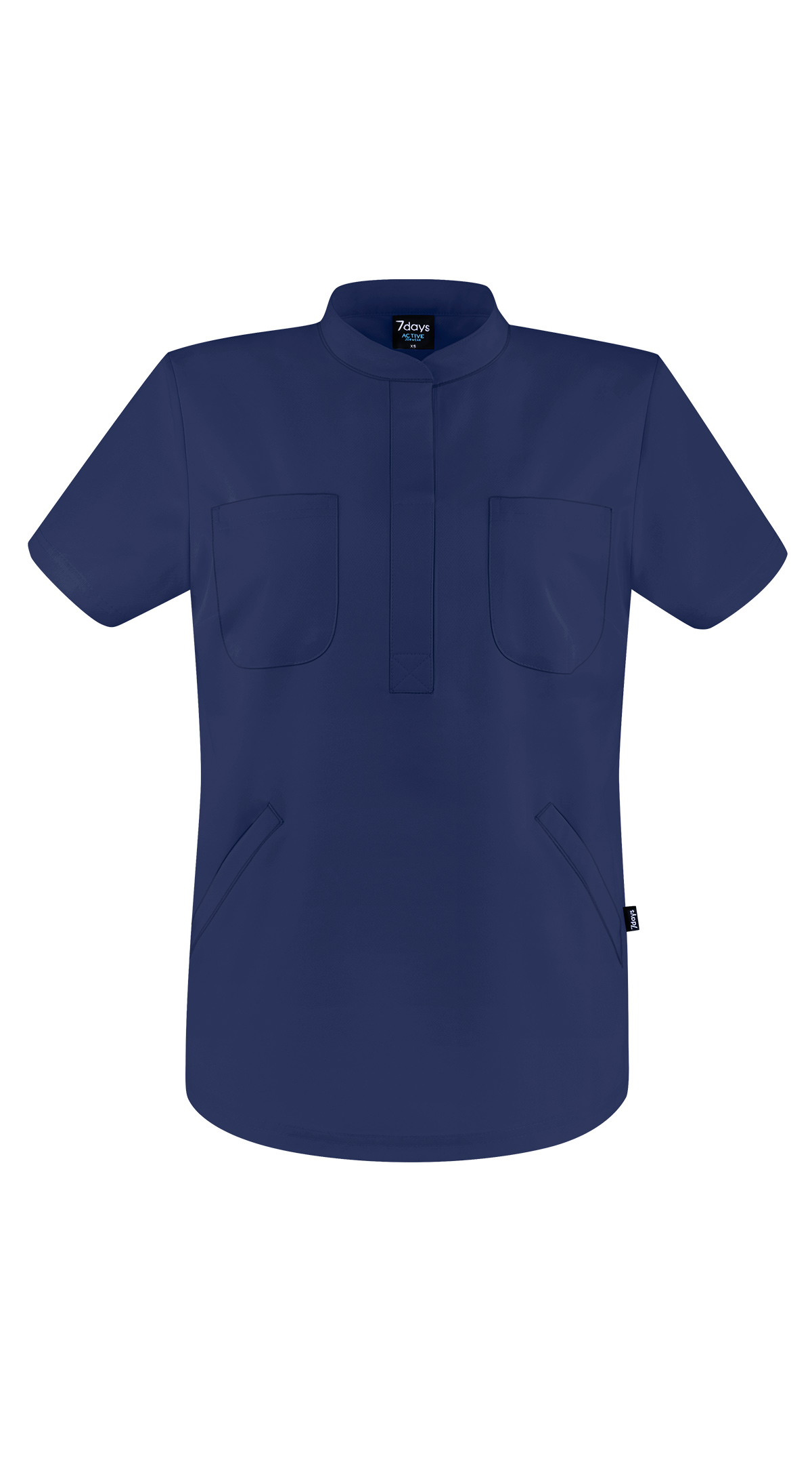 Weicher und flexibler Blusenkasack aus feuchtigkeitsableitendem Material für ein leichtes und angenehmes Tragegefühl. Außen glänzend, innen mit wabenartiger Struktur für hohen Tragekomfort. Mit kleinem Stehkragen, kurzarm, 2 Paspeltaschen + 2 Brusttaschen, abgerundeter Saum. Rückenlänge Gr. S ca. 64 cm, 84% Polyester/16% Elasthan, 150 g/m², 60°-Wäsche. Die Lieferung erfolgt ohne weiteres, abgebildetes Zubehör.