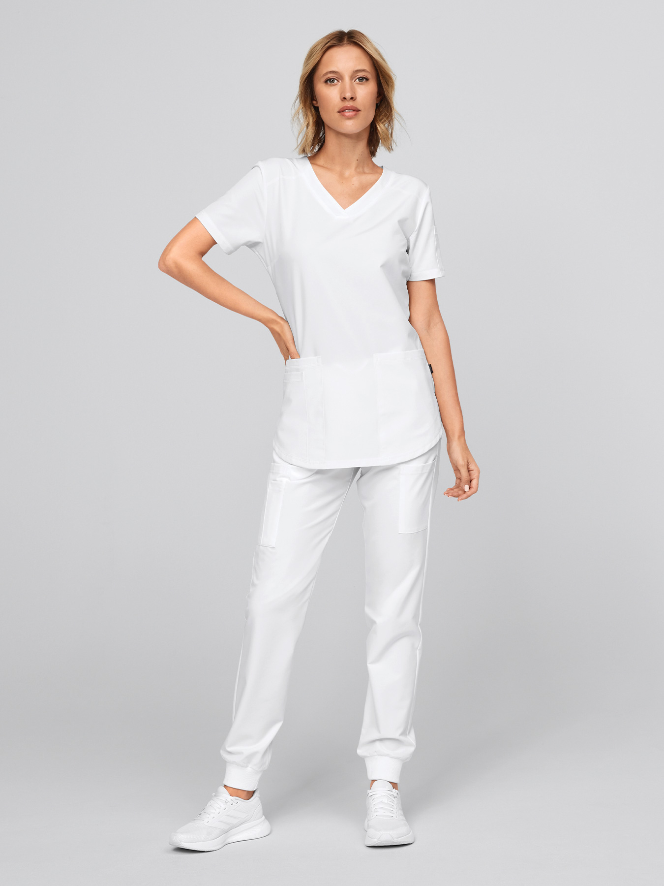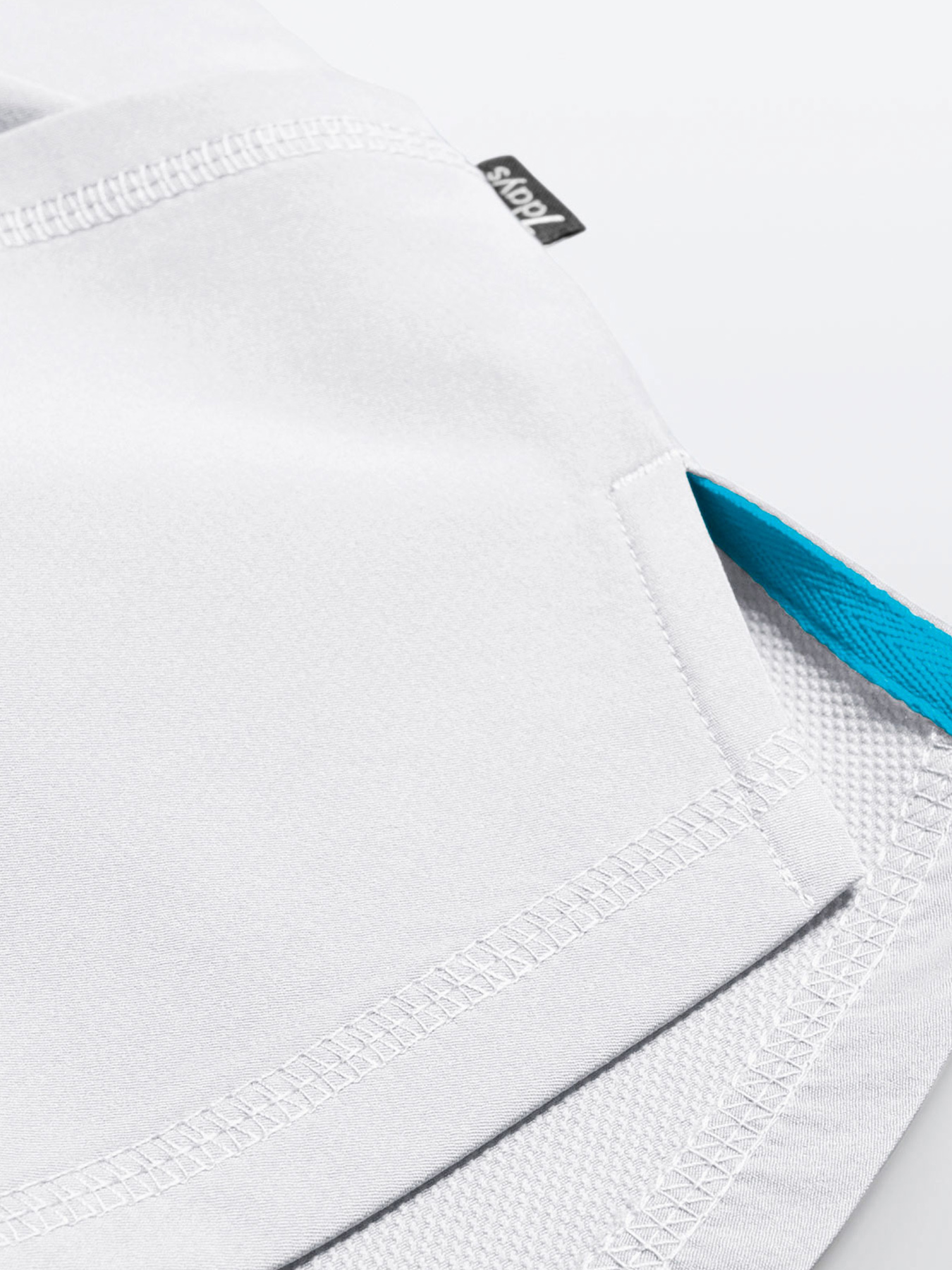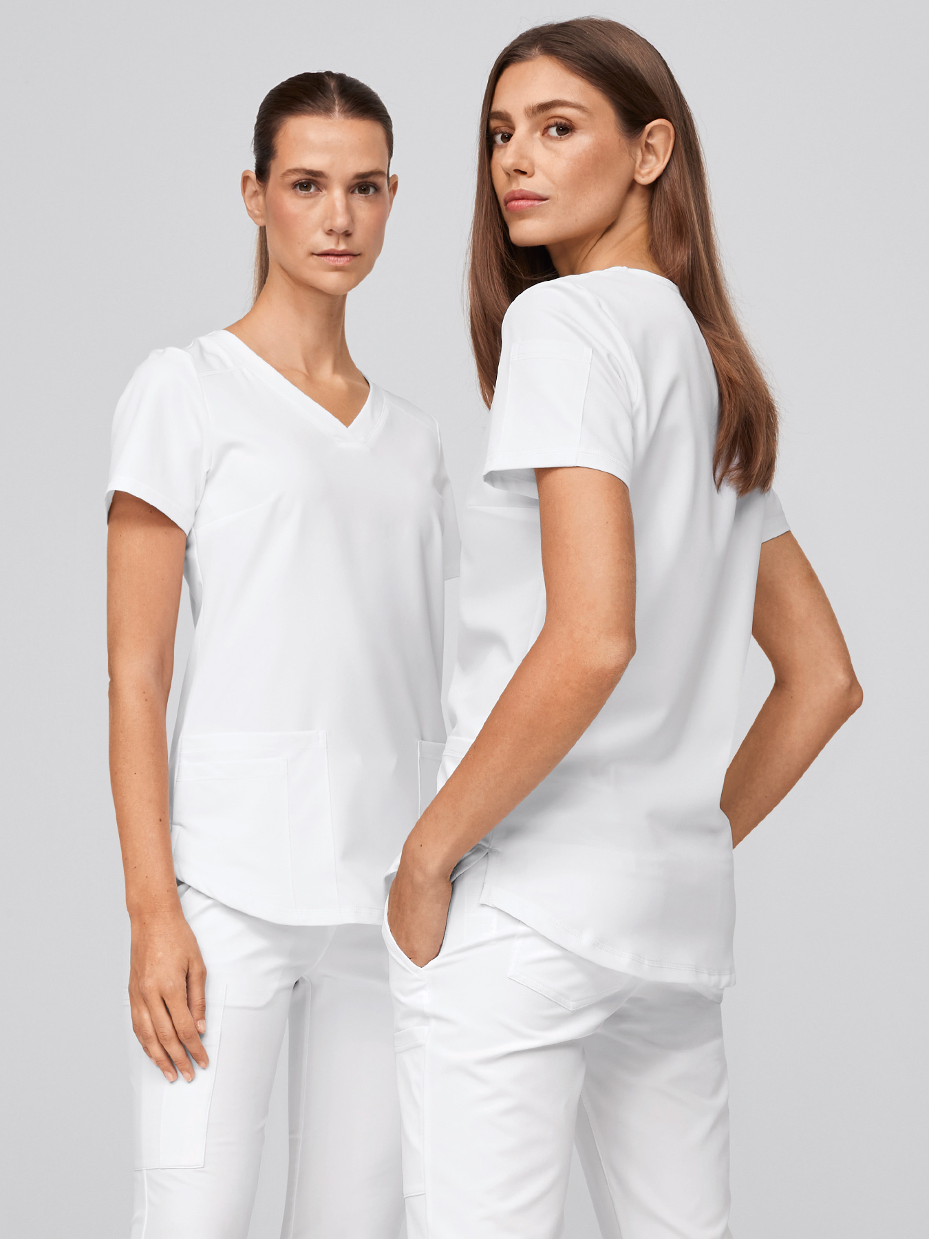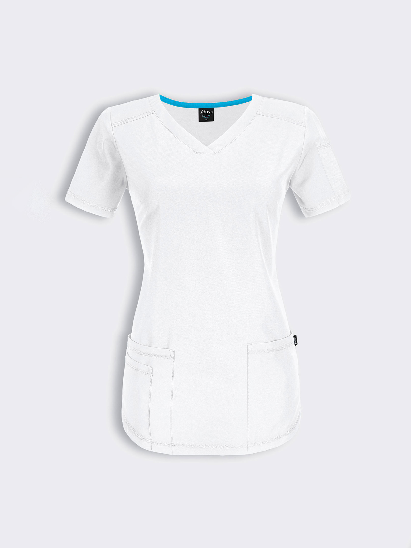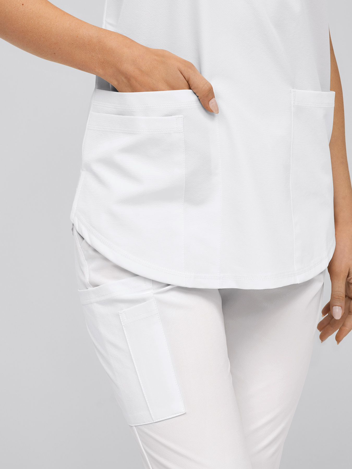 Kasack aus feuchtigkeitsableitendem Material für ein leichtes Tragegefühl. Außen glänzend, innen mit wabenartiger Struktur für hohen Tragekomfort. V-Ausschnitt, 3 Fronttaschen, Seitenschlitze, Rückenlänge Gr. S ca. 68 cm, slim fit. Leichte, elastische Qualität aus 91% Polyester/9% Elasthan, Micro-Gewebe, 150 g/m2, schnelltrocknend und atmungsaktiv, 60°-Wäsche, knitterarm, keinen Weichspüler verwenden. Die Lieferung erfolgt ohne weiteres, abgebildetes Zubehör.
