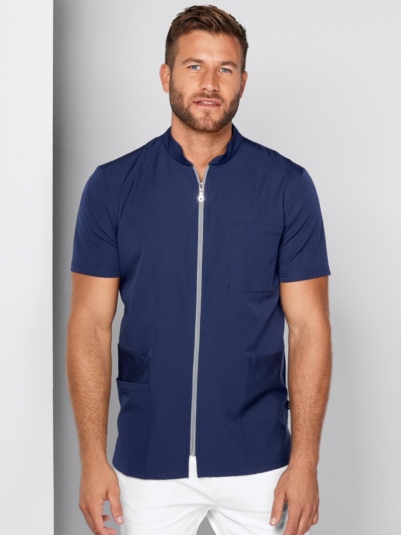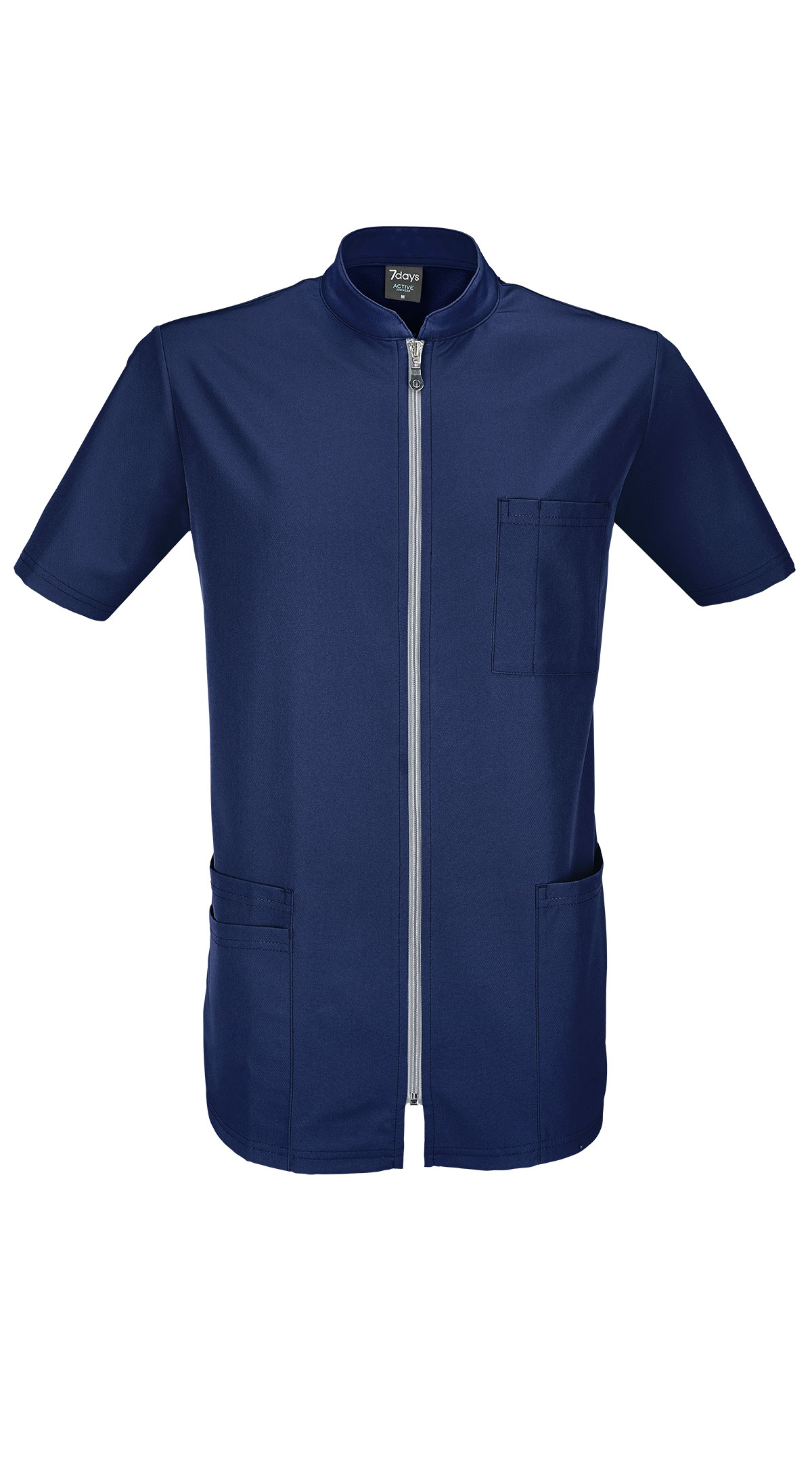 Weicher und flexibler Kasack aus feuchtigkeitsableitendem Material für ein leichtes und angenehmes Tragegefühl. Neuartiges Gewebe: außen glänzend, innen mit wabenartiger Struktur für hohen Tragekomfort. Mit kleinem Stehkragen, Reißverschluss, ½-Ärmel, 3 Taschen + 1 Brusttasche, Seitenschlitze, Rückenlänge Gr. M ca. 73 cm, 84% Polyester/16% Elasthan, 40°-Wäsche, bügelfrei, keinen Weichspüler verwenden.