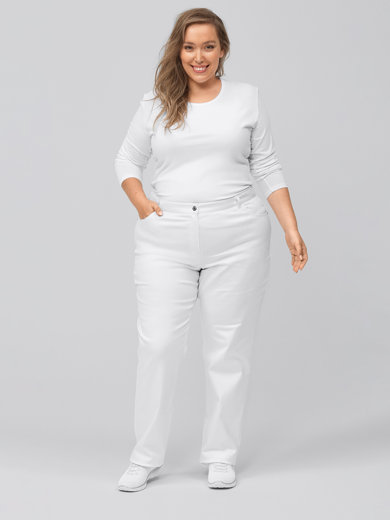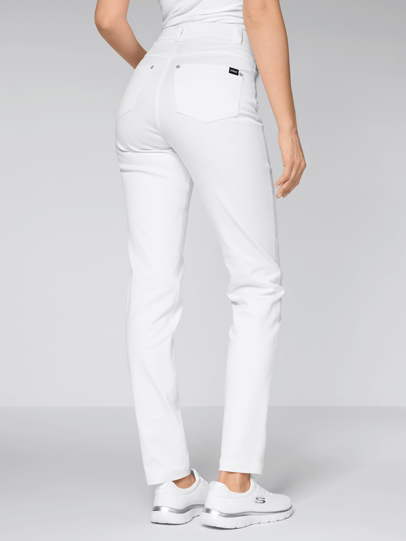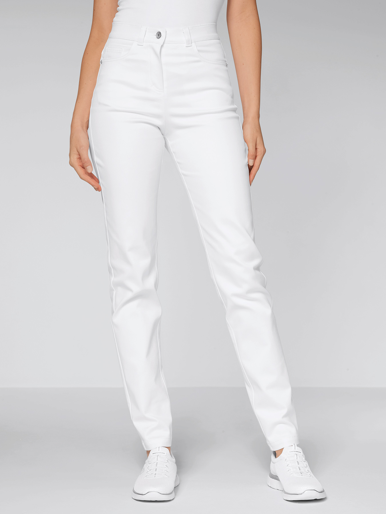 Ultra-Flex-Stretchhose, bequeme Weite, blickdichte, super elastische Qualität mit optimalem Rücksprung. 5-Pocket, Gürtelschlaufen, hohe Leibhöhe, gerades Bein, Schrittlänge ca. 80 cm. 64% Baumwolle/33% Polyester/3% Elasthan, 60°-Wäsche.