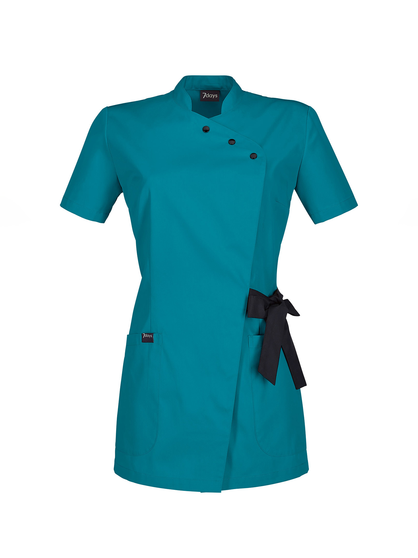 Die dekorative Schleife macht diesen eleganten, feminin geschnittenen Kasack zu einem besonderen Hingucker! Stehkragen, 3 sichtbare Druckknöpfe, asymmetrisch verlaufende verdeckte Knopfleiste, ¼-Ärmel, 2 Taschen, Rückenlänge Gr. S ca. 73 cm. Weiß = 65% Polyester/35% Baumwolle, 195 g/m², Farben = 50% Baumwolle/50% Polyester, 150 g/m², 95°-Wäsche, trocknergeeignet, Webware.