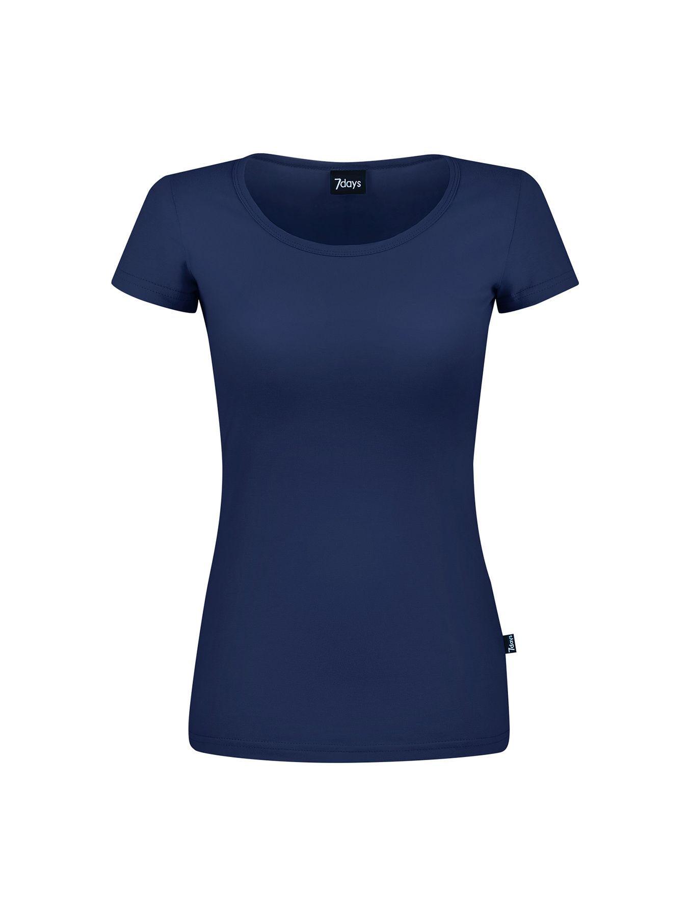Rundhalsausschnitt, Kurzarm, körpernah und extra lang geschnitten. Rückenlänge Gr. S ca. 68 cm. Formstabil + elastisch aus 95% Baumwolle/5% Elasthan, 180 g/m2, Single Jersey, 40°-Wäsche.