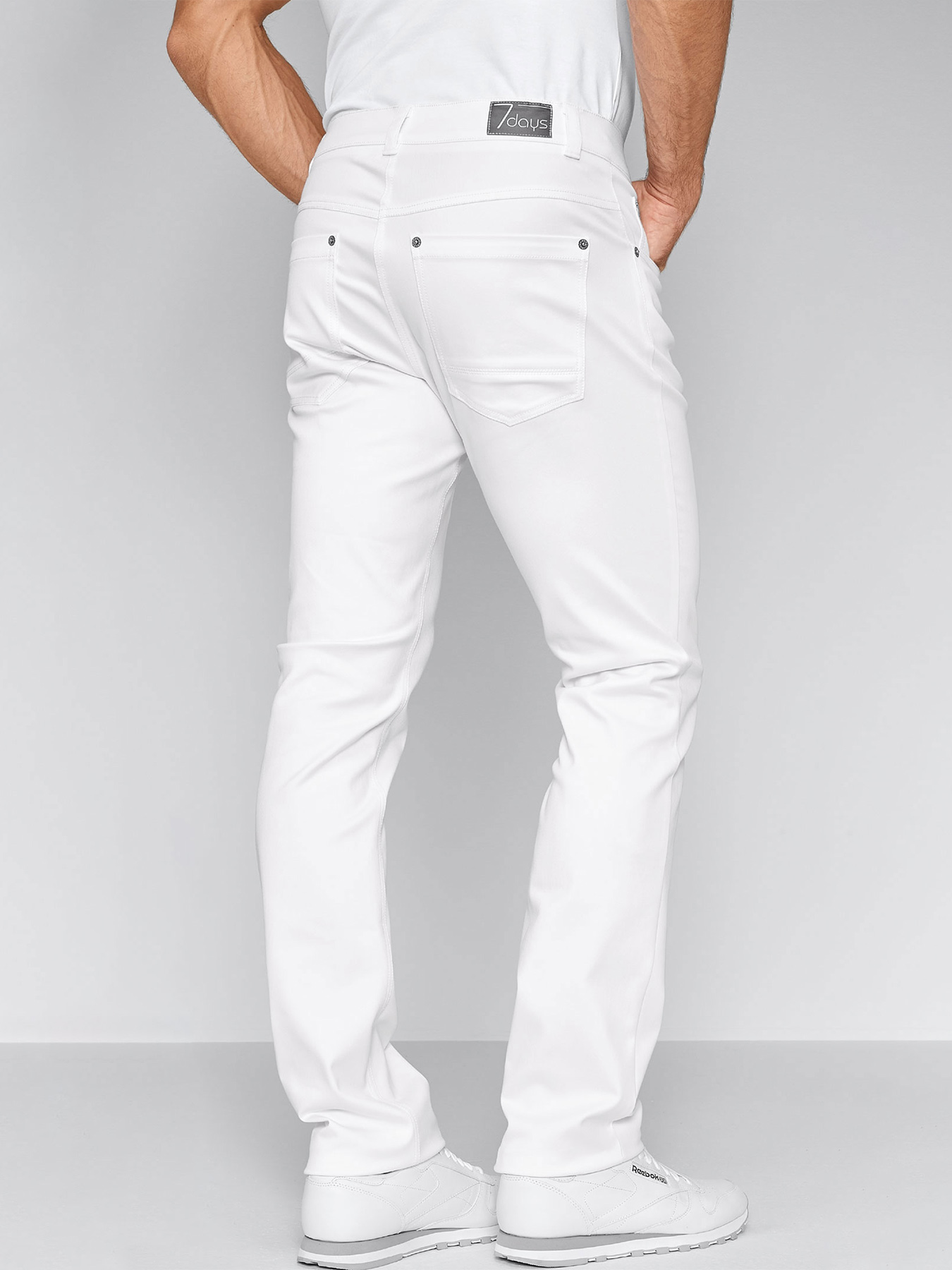 Moderne 5-Pocket-Jeans aus blickdichtem Ultra-Flex-Stretchdenim, normale Leibhöhe, gerades, etwas schmaler geschnittenes Bein. 64% Baumwolle/33% Polyester/3% Elasthan, blickdichte 300 g/m2-Ultra-Flex-Stretchware, 60°-Wäsche.