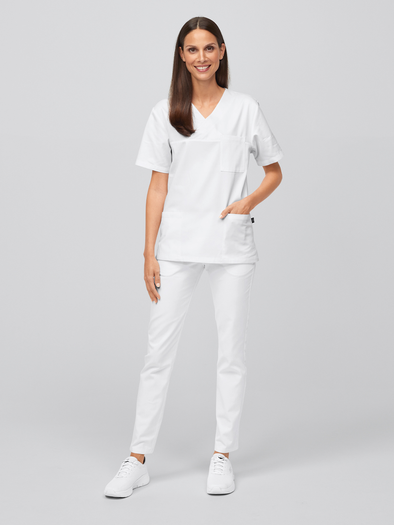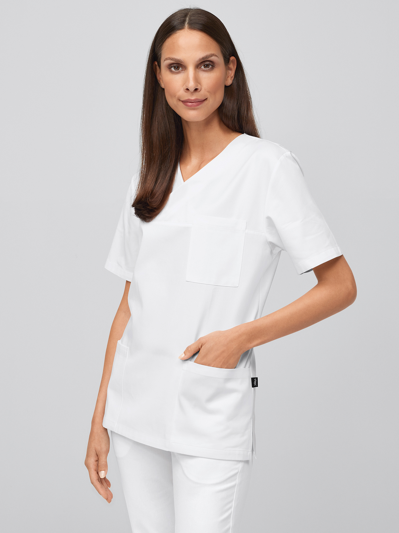 Unisex: Legere Schnittführung, überschnittener V-Ausschnitt, 1 aufgesetzte Brust-, 2 aufgesetzte Eingrifftaschen, Seitenschlitze, Rückenlänge bei Gr. M ca. 72,5 cm. 100% Baumwolle, 95°-Wäsche, chlorbar, trocknergeeignet, Webware.